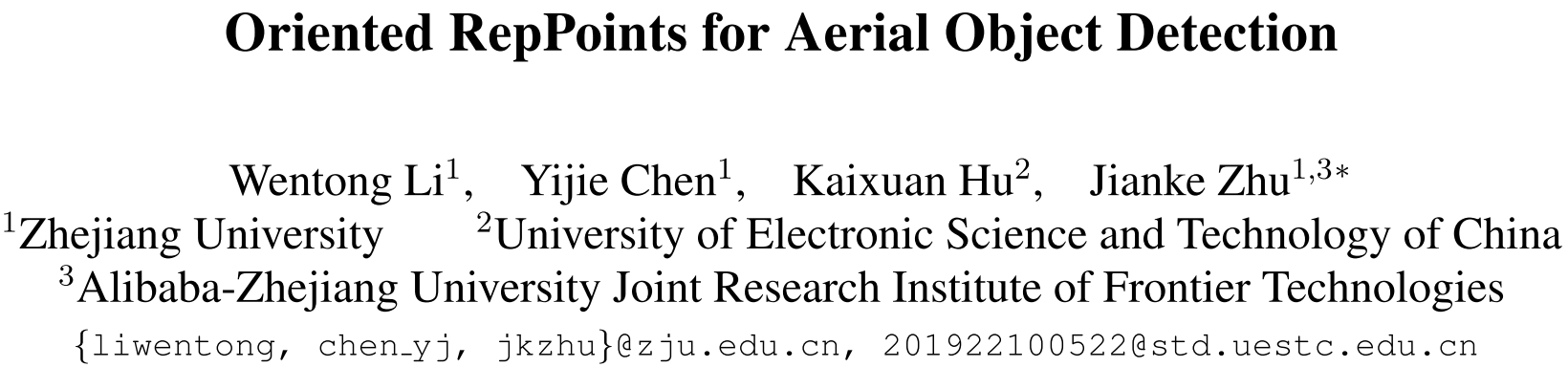 论文标题:《Oriented RepPoints for Aerial Object Detection Wentong》