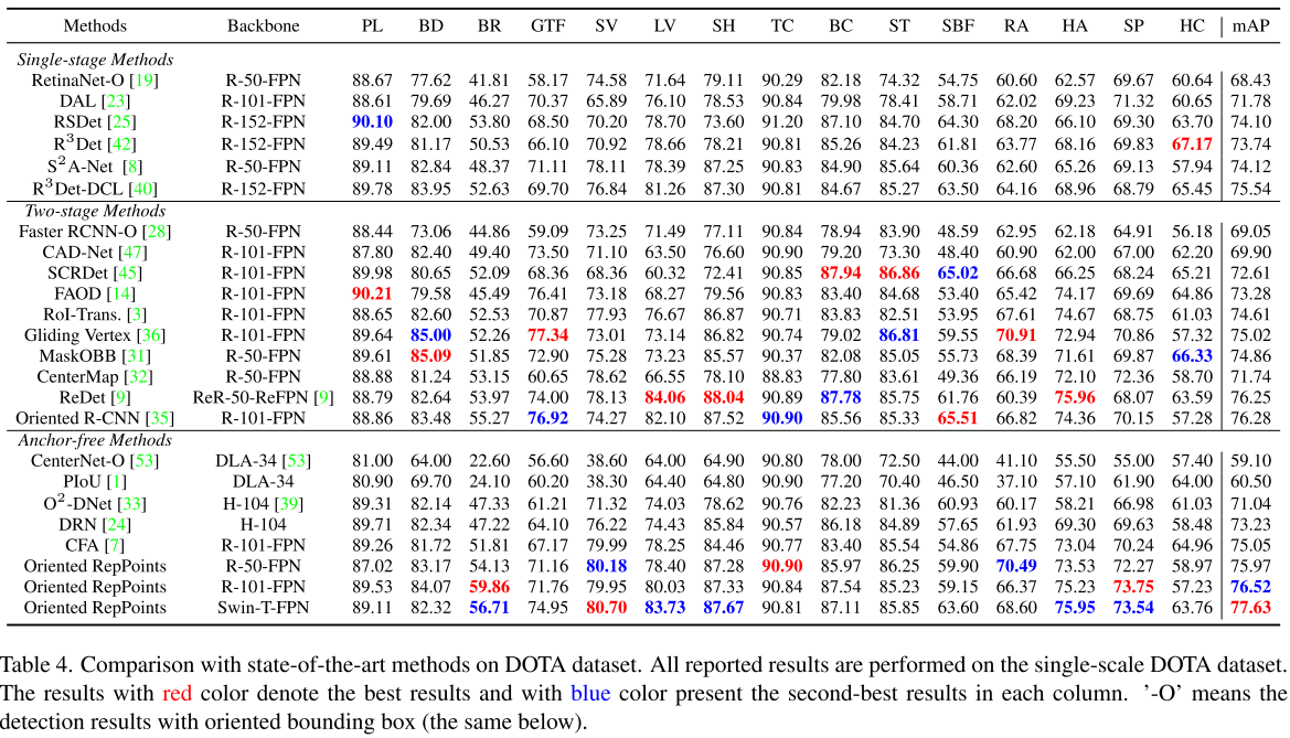 - 提出了一个高效的航拍目标检测器Oriented RepPoint