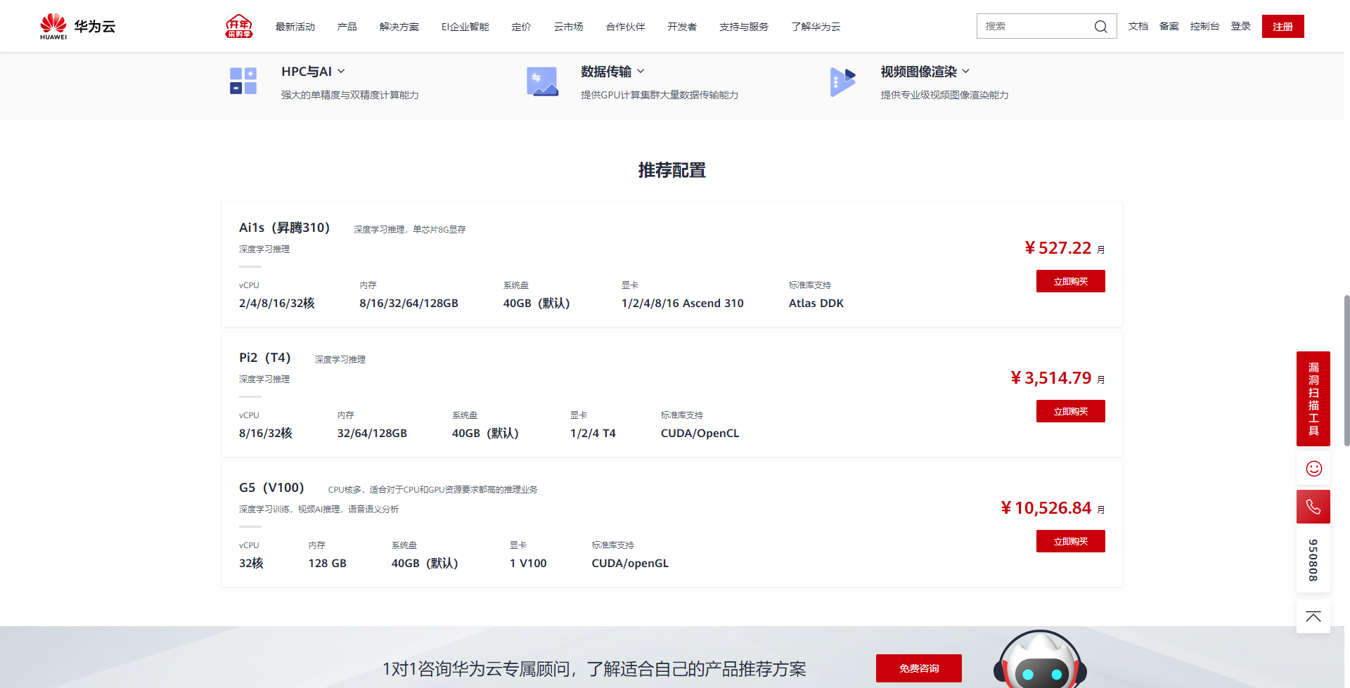官网:GPU加速云服务器_GPU云服务器_GPU云主机-华为云 (huaweicloud.com)