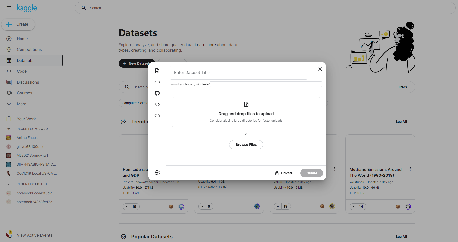 数据集可以直接引用别人上传的数据集,也可以自己上传打包好的数据集。
