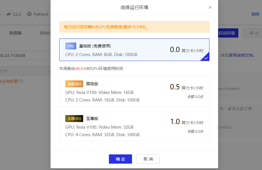 连接后就可以正常使用了,值得注意的是结束训练后记得保存环境,停止并释放资源。保存的环境会存储在网盘中,注意查看网盘容量。
