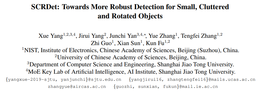 论文标题:《SCRDet: Towards More Robust Detection for Small, Cluttered and Rotated Objects》