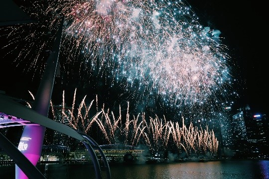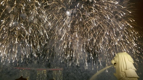 - 烟花。每年8月9日是新加坡的国庆日,虽然这次我们没能赶上新加坡 的国庆,但是我们赶上了国庆烟花预演,美丽的烟花表演让人称叹。